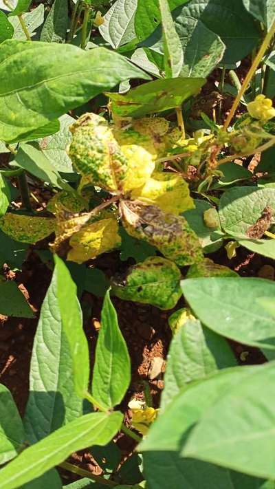 Hi D.Satish. It looks like initial stage of Cercospora Leaf Spot of Legumes and severely effected by Mungbean Yellow Mosaic Virus . This disease transmits through vectors like Whiteflies . Control vectors to control this disease. So, click on green links for checking symptoms and taking control measures from Plantix library.