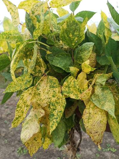Hi Srihari. It looks like Mungbean Yellow Mosaic Virus . This disease transmits through vectors like Whiteflies . Control vectors to control this disease. So, click on green link for checking symptoms and taking control measures from Plantix library.