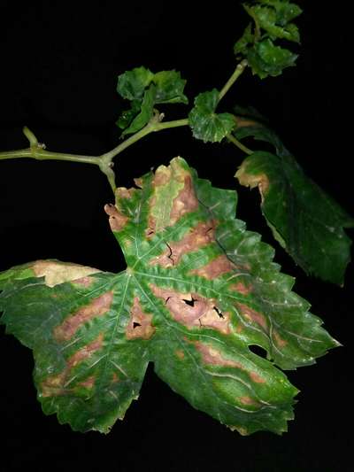 I fully agree with sali sir. it isDowny Mildew on Grape . kindly refer plantix library for more information and description of the problem and management. thanks