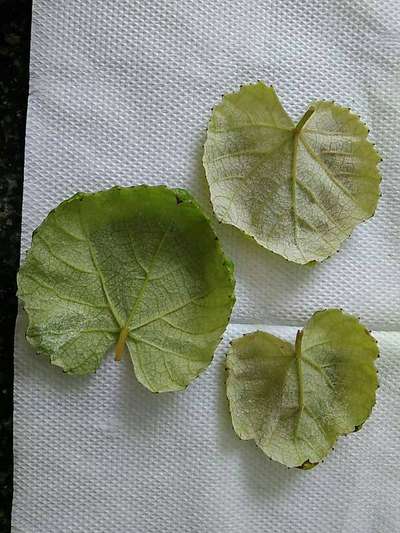 On Otello grape leaves both side pale green amorphous spots.