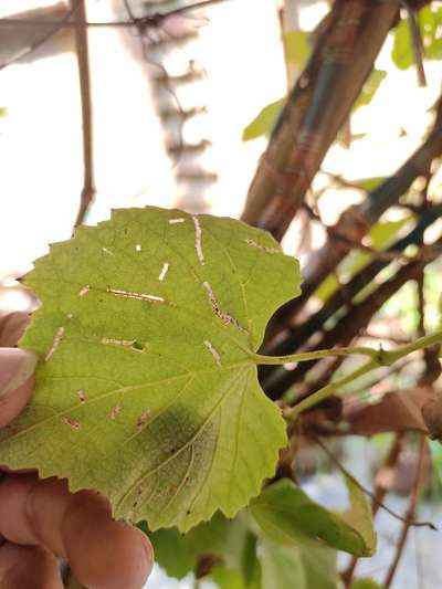 On leaves 🍁 of grapes a web like structure find like any insect crawl in its vains Suggest me how it can be controlled..