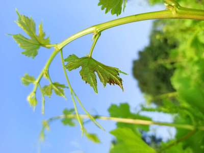 In a single stem some leaves are healthy while the others seem infected or drying..