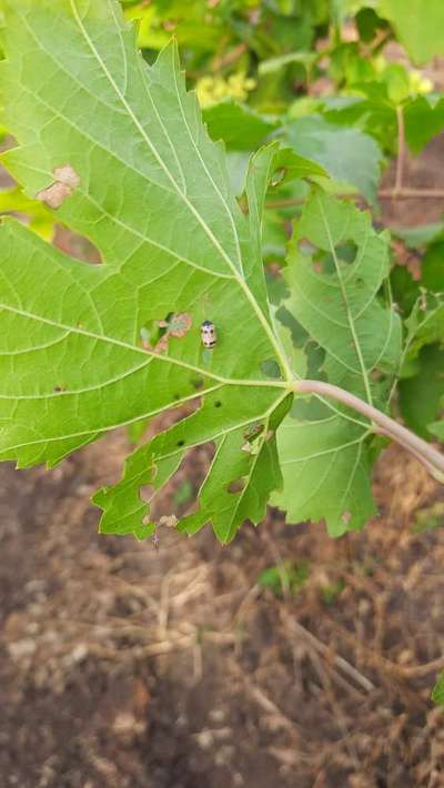 Hi Yogesh Salgude . Compare symptoms with Vine Flea Beetle and Curculio Weevil by clicking on green links for taking control measures from Plantix library .