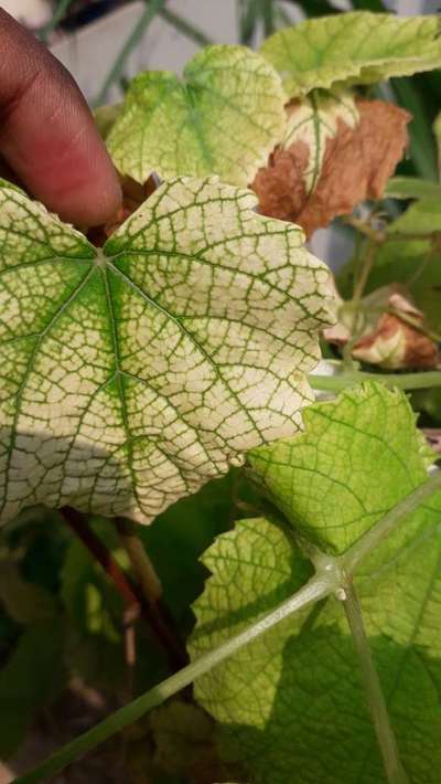 hello sir, i have two grape plants in my garden and since twodays problem is started,it like yellowish powder like fungus or something else is damaged my plants Sevierely .it killing my plants leaves. after the leaf affected with this virus after twodays the greenish leaf turning into dry one and falling from plant. please suggest me some good medicine .
