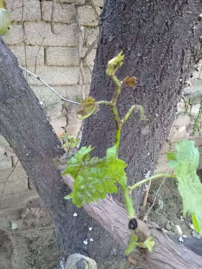 Hello dear Shahzaib Khan how are you dear the symptom i suspected due to Aphids attack dear just apply acetamiprid or imidacloprid+NPK dear that your grape open leaves
