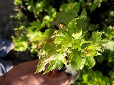 Learn more about PlantixLeaves are turning brown and dry have a little bit spot only this one verity of grapes have this disease all other verity are in good condition.