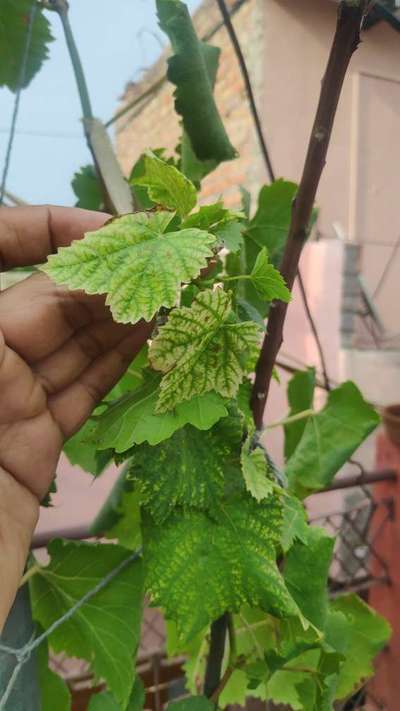 Hi Praveen. Your Grape plants showing symptoms of Magnesium Deficiency . Click on green link for checking symptoms and taking control measures from Plantix library.