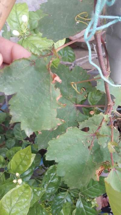 The margin of the grape leaves got blight and also changed its colour to yellow.....