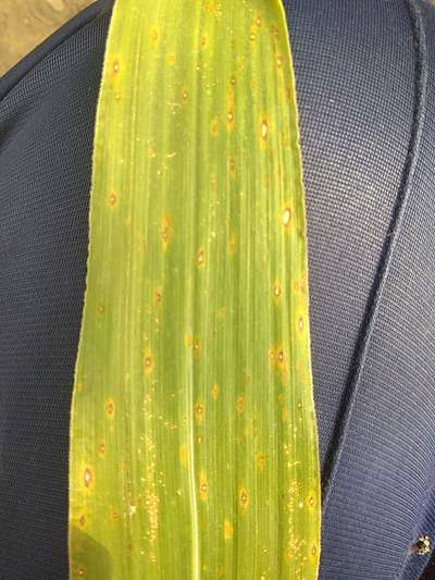 Hello, in the early stages it is difficult, because both diseases share the same symptoms with minor variations. The easiest way to find out if it is eyespot is to hold the leaf against the light (check out my picture). As the disease progresses, the centers of the spots darken to a tan color with a brown or purple border. When the leaf is held to the light, the lesion border may show a yellow halo, giving the corn disease its name: “eyespot.”