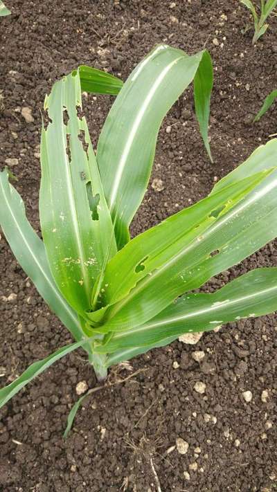 Fall army worm. These days it's very dangerous pest to maize. Spray deltamethrin . Spray should cover in the whirls. Because it keeps eggs there