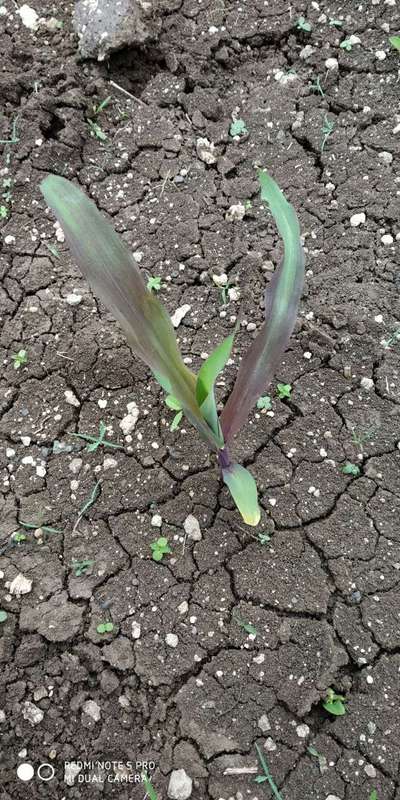 Hi Faizan Shaikh its Phosphorus Deficiency in maize tell about your area and about fertilizer In this stage put 50 kg diamonium phosphorus 1 day before irrigation after this mix 25 nitrogen in 200 ltr water and solve it in water and give it in flood your maize will change the colour and start growth