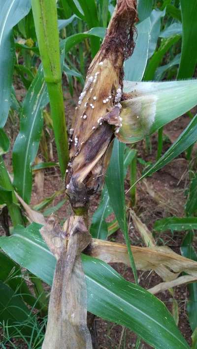 infestation of gross wilt and blight of maize, spray cooper oxychloride, further for Mealybug infestation spray malathion.