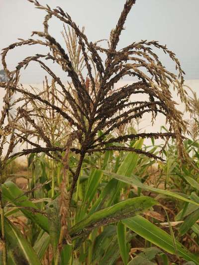 Dear Sonu Saurav I agree with Mr Suresh Gollar that it is sooty mold. The mold grows on syrup secreted by Aphids. It disrupts the photosynthetic area , thus affecting the yield. The Aphids can be controlled by spraying Dimethoate 1.7 ml OR Acephate 1 gm OR Imidachloprid 0.5 ml in one litre of water. About 250 litres of spray solution may be required per acre. Good luck.
