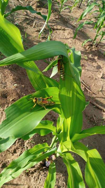 Hi Gabriel , These are young one of P. Pictus grasshopper. They have chewing types of mouth parts. They feed on leaves. The application of fipronil proved effective to supress their population.