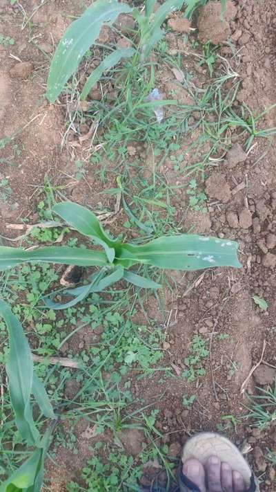 Hi K9948330331. Compare symptoms with Spotted Stemborer and Thrips . Click on both green links for checking symptoms and taking control measures from Plantix library.
