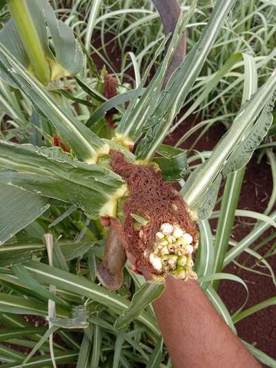 Silk was cut down by the pest.. Damage percentage is 3-4 plants were affected out of 10 plants
