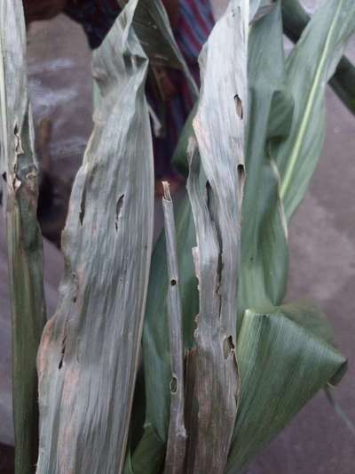 Hi Jagarapu Kishore Kumar. I am not sure, but symptoms are similar to Spotted Stemborer . Click on green link for checking symptoms and taking control measures from Plantix library. You can also create a "Cultivation Tips" for Maize in Plantix. It provides you information on how to optimize your crop production.