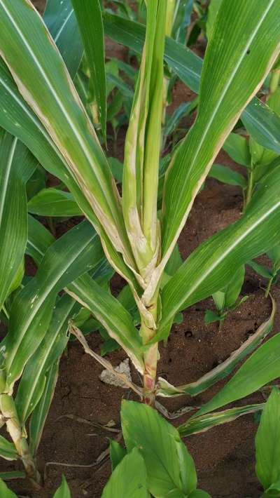 Most of the maize plants are fallen on the ground......above the pics u can see the internode like brown colour... sore like smell Please recommend remedy........