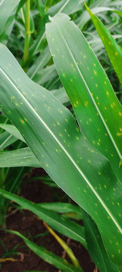 Tiny spots surrounded by Yellow Halloween found in Maize leaves of 65 days old crop
