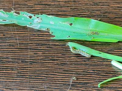 Learn more about PlantixThis larva feeding on new maize 15 days plants.