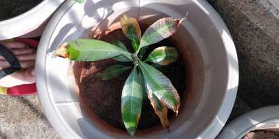It is a mango plant I recently grew among 5-7 others All others are also in the same spot and receiving equal water and sunlight. Only this one has this discolouration of the leaves. I check my plants 2-3 times a day and I haven't seen any insect crawling on the plant.