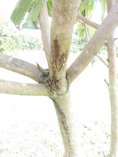 There liquid like sticky liquid is leaking in the plant and after some barck will spoil and total tree will die