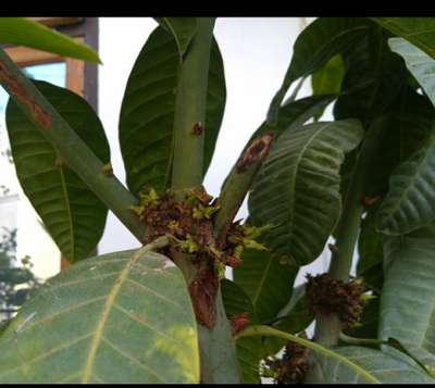 in mango crop plan growth is stopped and due a diseases seen as in the picture. experts advice is expected to eradicate the diseas
