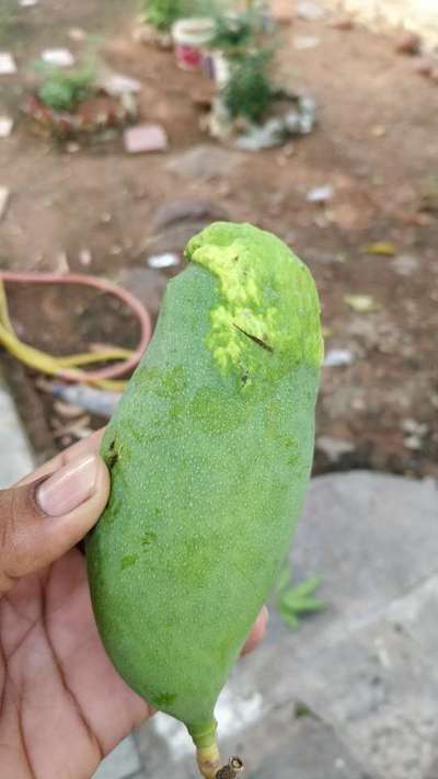 Why are these mangoes getting these type of textures? There's no sign of it getting rot inside once cut but when it grows big these pimps grow on it's tail