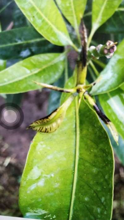 Sudden shedding of mango leaves. End branches also getting dried. Only suvarnarekha variety affected.