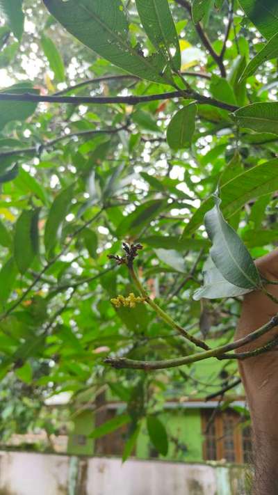 The tree is a bud mango tree. I don't know which variety it is. It gives just one or two fruits a year and the rest of the flowers just dries up and blackens and is lost.