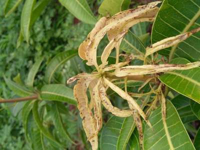 Hello, I've attached pics of the mango leaves and fruit. What's wrong with it and how to fix it? Thanks