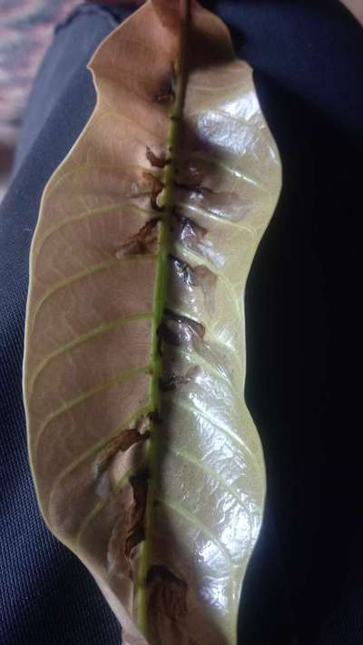 Hello to all, you can see leaves of the mango plant with some kind of infection. Request for suggestions as a remedy.