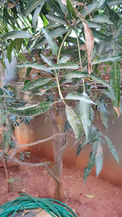 Leaves are having brown spots. The mango tree is more than 5 years old and it 8s not flowering