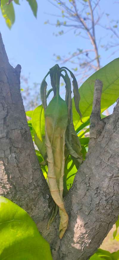 Hi Madhusudhan . As per your sent image - your plant maintenance is not good it seems. Apply recommended dosage of fertilizers in split dosage along with Farm Yard manure or Vermicompost once in 6 months to get good growth and strength in plant to grow well. Apply optimum water too depending upon soil and climatical conditions regularly. Try. Apart from above, also compare symptoms with Mango Dieback Disease by clicking on green link for checking symptoms and taking control measures from Plantix library.