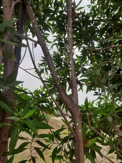 4 pictures attached please check all Please check the problem with mango tree, something wrong with leaves and plant not giving new branches and leaves. Treatment given till now by me:- 1) added cow dung compost. 2) given wood ash. 3) neem leaves spray given 3 times. Neem leaves boiled in water with garlic and its spray was given also neem cake was dissolved in water for 3 days and its spray was given. #Bacterial Black Spot of Mango #mango @Suresh Gollar