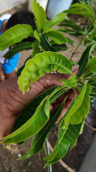Hi Manohar. It looks like Boron Deficiency . Click on green link for checking symptoms and taking control measures from Plantix library. Also need to apply good amount of Farm Yard manure or Vermicompost once in 6 months along with recommended dosage of fertilizers. You can also use fertilizer calculater available here on home page of Plantix to increase your plant growth. Try well and take care of your Mango plant.