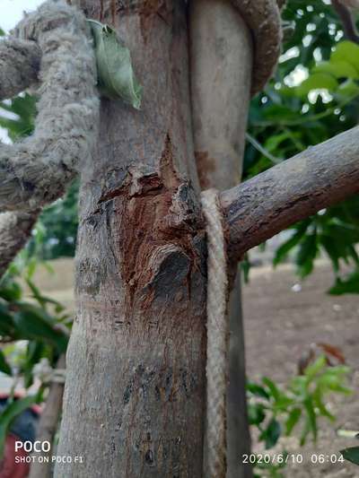Trunk seems to damaged at the place where branches are grown. In multiple places.mango tree is 3 years old