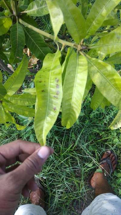 Hi Leelasaiprasad. And check symptoms with Nitrogen Deficiency and initial stage of Anthracnose of Papaya and Mango by clicking on green links for taking control measures from Plantix library.