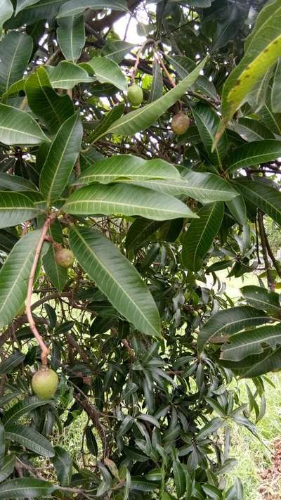 My mango tree in the garden. Please see 2 pics. 1. The flowers are turning red and black. I also see small mangoes are developing. 2. Please observe the leaves in the 2nd photo of the same plant. Please suggest corrective action.
