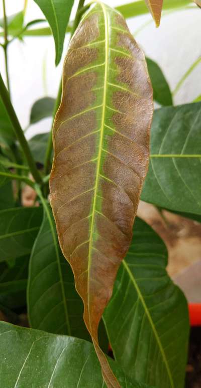 Learn more about PlantixOne of the stems of my mango plant has leaves which are going brown. All the leaves in that particular stem alone is going through this . Is this a sign of stress or pests ?