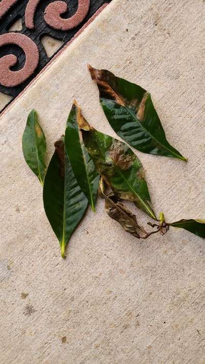 Good morning community! I am a new gardener and I bought a coconut gardenia. I planted and I've been watering in the early a.m. and in the p.m. but the leaves closest to the ground are turning brown. Please advice I live in San Antonio Texas 8b. TIA.