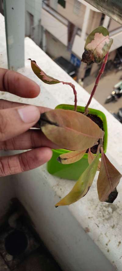 This is 2 year mango grafting, leaves turned into pale green and curling