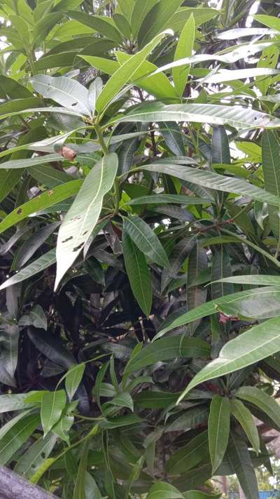 Mango leaves endings are getting folded getting dried and new leaves arebfalling down... Leaves getting holes.. we can see a inset in the folded leaves