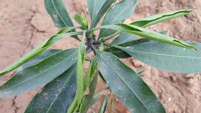 Hi Mufti Khan . I am not sure, but compare symptoms with Calcium Deficiency, Thrips and Powdery Mildew of Mango by clicking on green links for taking control measures from Plantix library. Also need to apply good amount of Farm Yard manure or Vermicompost along with recommended dosage of fertilizers of your area or you can also use fertilizer calculater available here on home page of Plantix to increase your plant growth. Try well and take care of your Mango plants please.