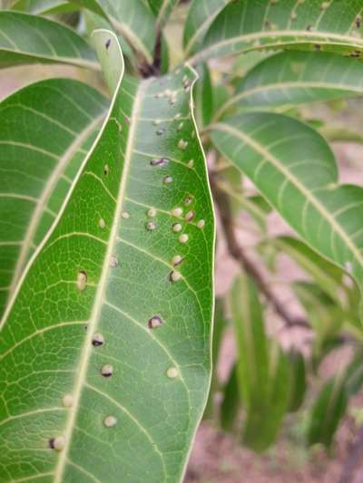 Hi...to community.am new to this.recently (july month)we planted mango ..In 4 acres.now we are observing leaves are like this.and insects also shown in photo.please give proper solutions and medicine for this.