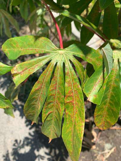Learn more about Plantixthe cassava's leaf has many spots like rust