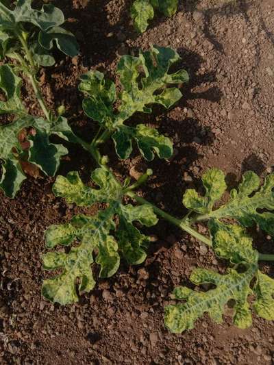 Hi Pankaj Tayade . It looks like Watermelon Mosaic Virus . This disease spreads through vectors like Aphids . Hence 1st you control vectors, disease automatically reduced. Click on both green links for knowing symptoms and taking control measures. Thanks for visiting.