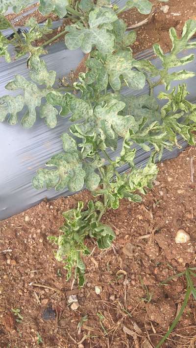 Any one please suggest action to be taken for cure this in watermelon plant- 35 days old