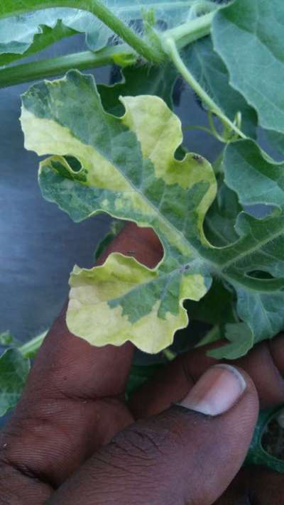 We have muskmelon planted a month ago. Out of 2000 plants some 20 plants are affected by this issue, dried leaves like this in our muskmelon plants. What is this disease and how to fix it?