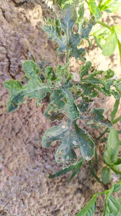 Learn more about PlantixMelon plant have many open Holes on leaves and dryness on it